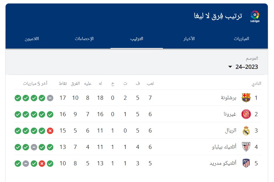 المركز الأول- برشلونة – 17 نقطة.. ترتيب الدوري الإسباني 2024