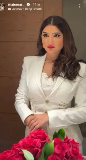 وأطلت الفنانة مي عمر في الفيديوهات والعديد من الصور بإطلالة مميزة وخطفت أنظار الجميع، وارتدت بدلة كلاسيك لونها أبيض ووضعت مكياج هادئ، وهو الذي أظهر جمال وجهها وتركت خصلات شعرها السوداء تنسدل على كتفيها، وحصلت على إعجاب الكثيرين في كل مكان.