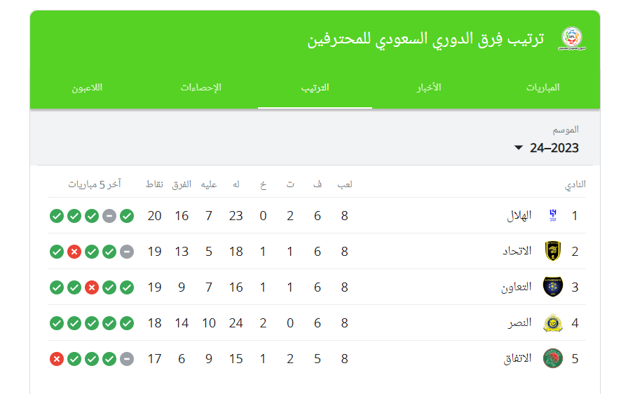 بعد مباراة الاهلي السعودي.. ترتيب بطولة دوري روشن 2023-2024