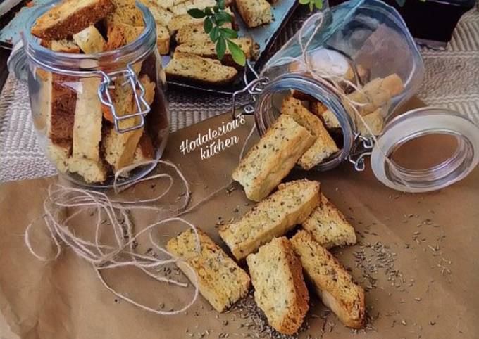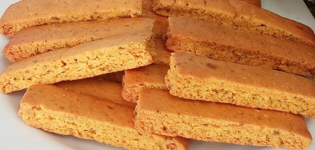 - أخرجي بسكويت اليانسون من الفرن واتركيه يهدأ ثم قطعيه بالسكين إلى قطع طولية.