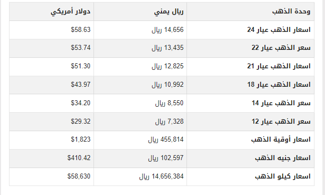 سعر الذهب في اليمن اليوم الأربعاء 4-10-2023