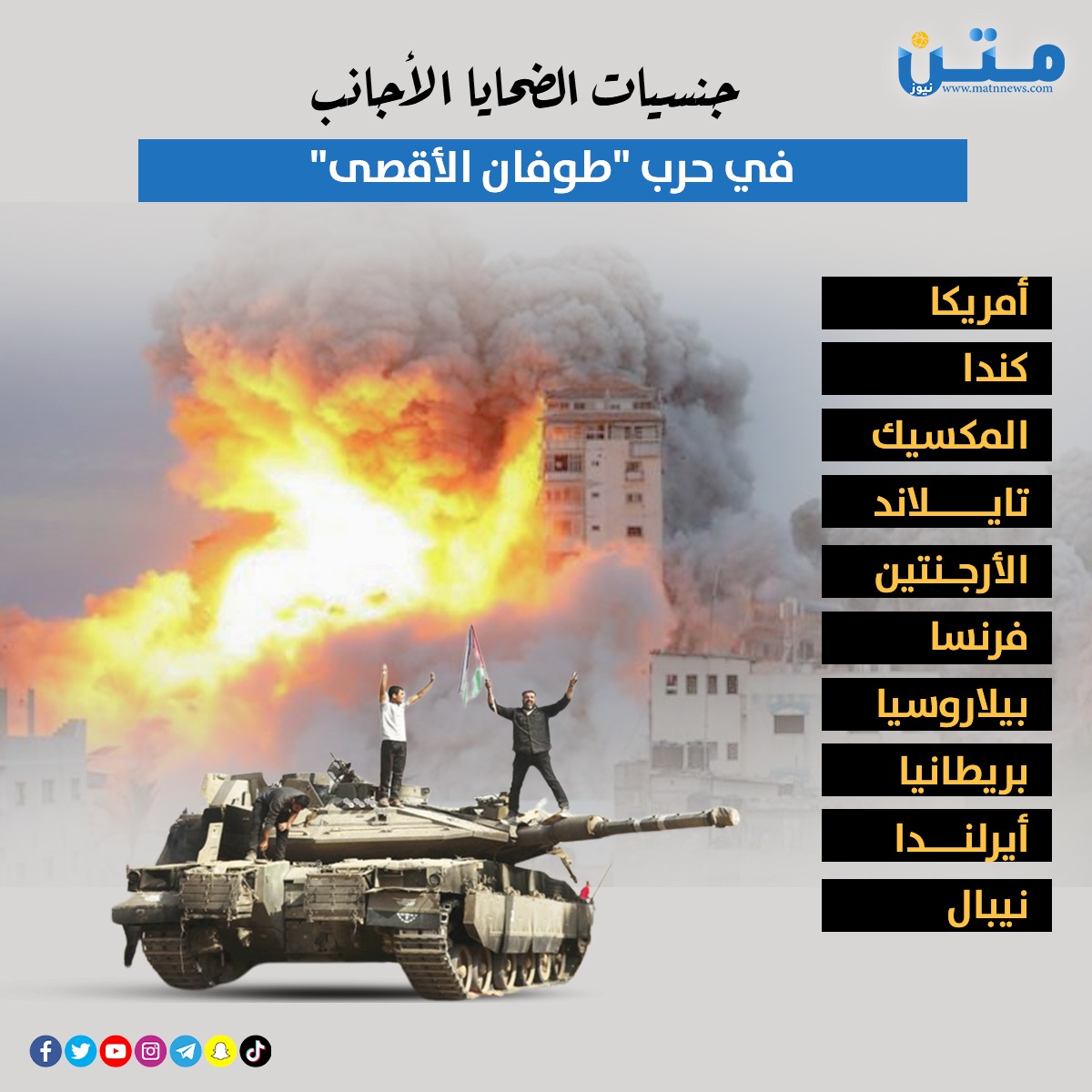 جنسيات الضحايا الأجانب في حرب "طوفان الأقصى" (انفوجراف) جنسيات الضحايا الإثنين 09/أكتوبر/2023 - 09:25 م 10/9/2023 9:25:59 PM انفوجراف متن محمد حسن شارك طباعة أمريكاكنداالمكسيكتايلاندالأرجنتينفرنسابيلاروسيابريطانياأيرلندانيبال شارك طوفان الأقصى ضحايا بيلاروس تايلاند روسي بريطانيا إنفوجراف