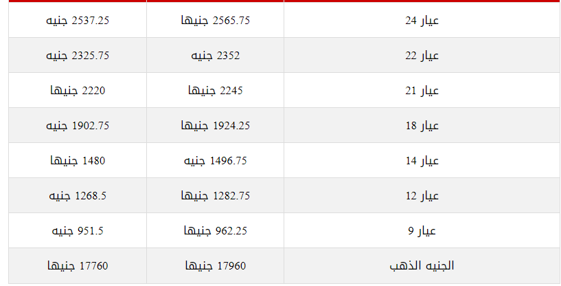عيار 24 2565.75 جنيها 2537.25 جنيه