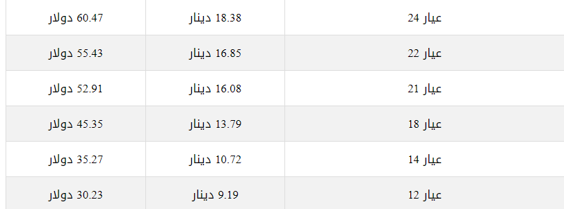 سجل سعر الذهب هيار 18 نحو 13.79 دينار، بما يعادل نحو 45.35 دولار.