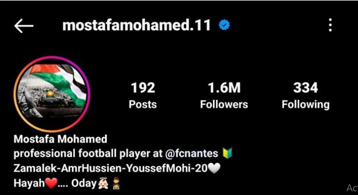 على خطى النني وتريزيجيه.. مصطفى محمد يُعلن دعمه للقضية الفلسطينية
