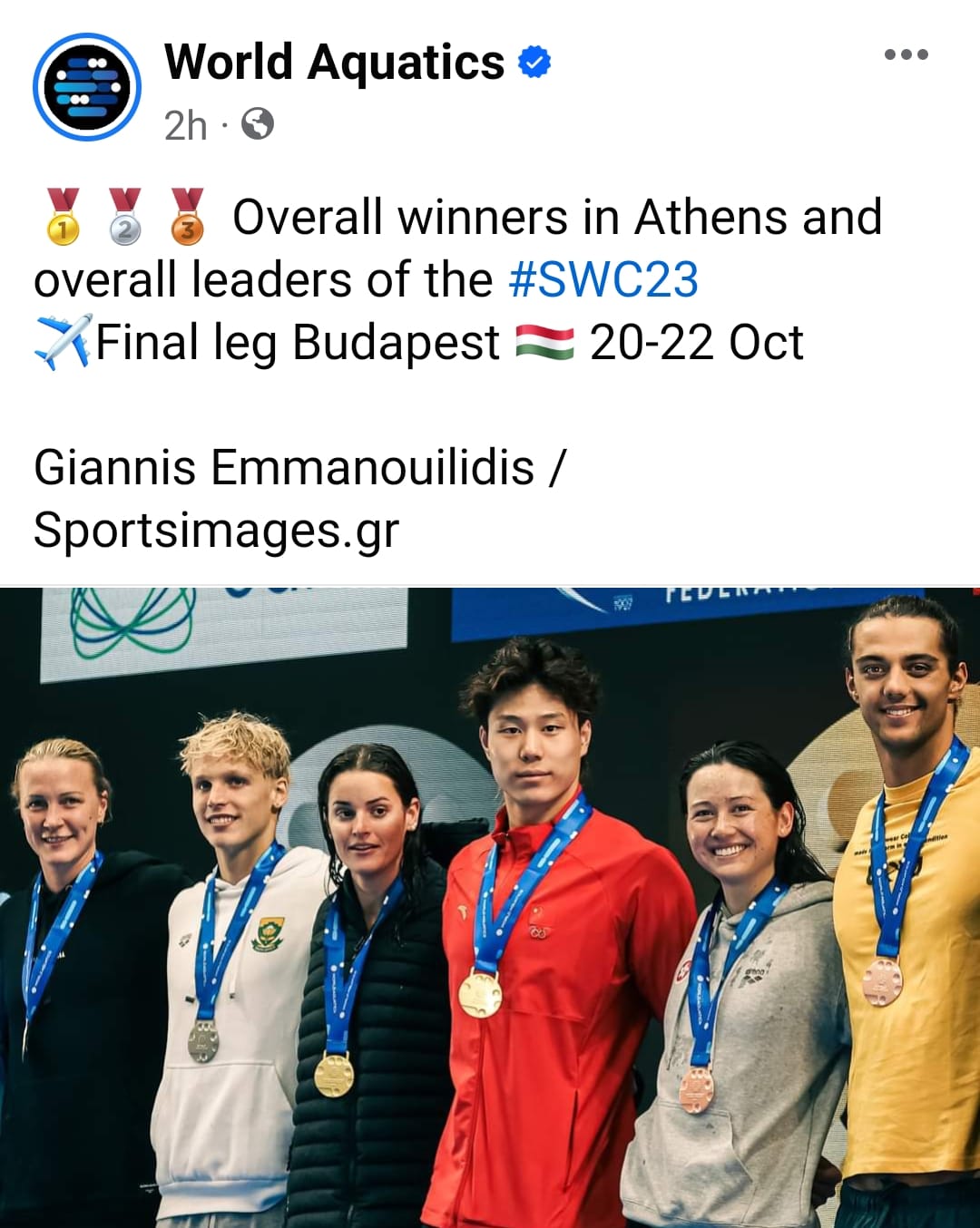 وحقق البطل المصري عبد الرحمن سامح، إنجازًا تاريخيًا بعدما توج بذهبية سباق 50 متر فراشة، ببطولة كأس العالم المقامة في اليونان، بعدما أنهى السباق في المركز الأول بزمن مصري جديد قدره 23.04 ثانية.
