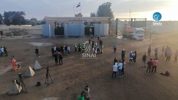 وتداولت هذه الصور "مؤسسة سيناء لحقوق الإنسان"، حيث جاء ذلك في الوقت الذي تنتظر فيه سيارات قوافل المساعدات بالقرب من معبر رفح البري الحدودي بين مصر وقطاع غزة على أن تعطينا السلطات الأمنية المصرية تعليماتها الخاصة بموعد فتح المعبر.