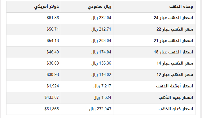 وفي هذه الصفحة، نعرض لكم سعر الذهب في السعودية الان بالريال السعودي والدولار الأمريكي وفقًا لأسعار بورصة الذهب العالمية ومحلات ومتاجر الذهب بالسعودية مباشر لعيار (24-22-21-18-14-12) والأونصة والجنيه وكيلو الذهب، ويتم تحديث الأسعار لحظة بلحظة لضمان توفير المعلومات الدقيقة.