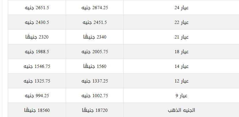 عيار 24 2674.25 جنيه 2651.5 جنيه