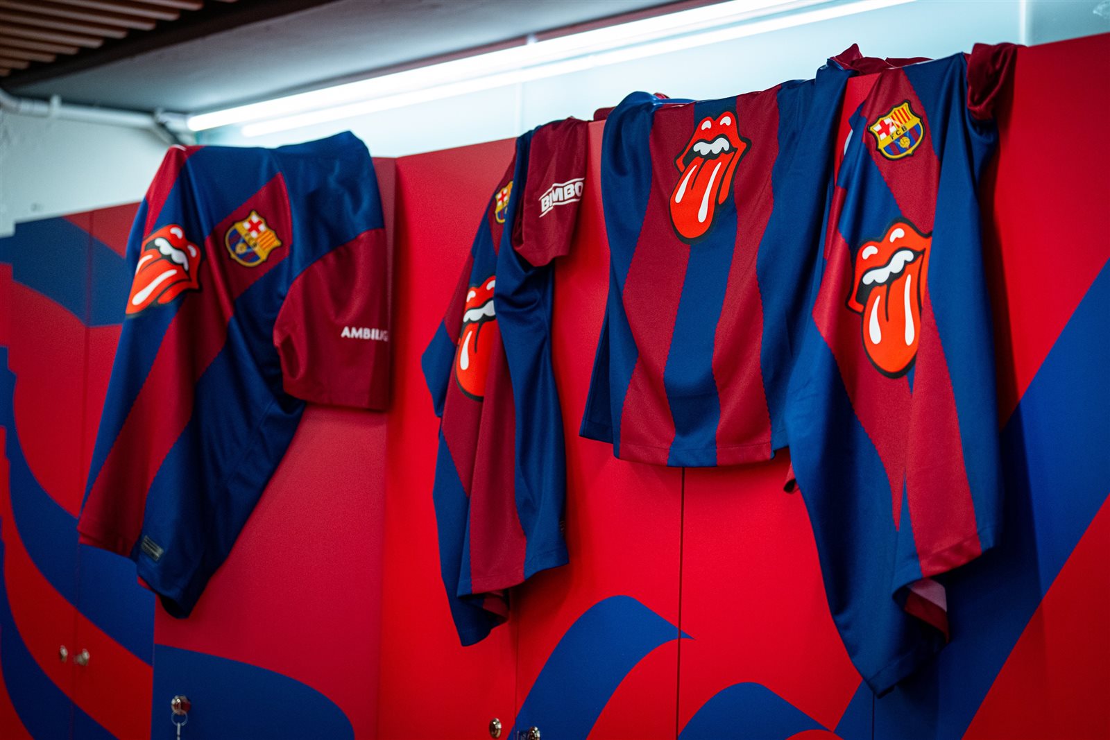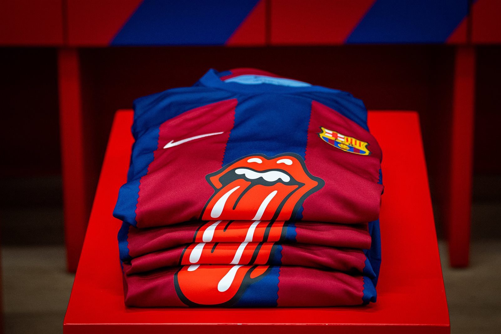 وسيضع برشلونة على قميصه بموجب الاتفاق مع الراعي الرسمي تطبيق الأغاني الشهير "سبوتيفاي"، شعار فريق الروك البريطاني الشهير "ذا رولينج ستونز"، في كلاسيكو الأرض.