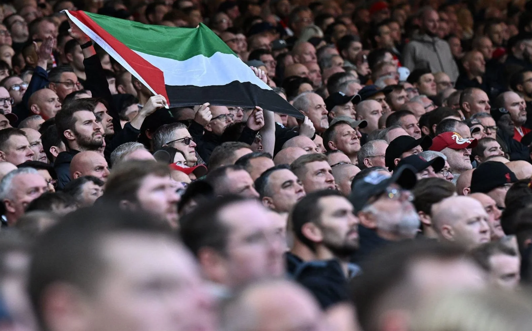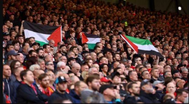 حرصت جماهير ليفربول التي حضرت في استاد "أنفيلد" لمتابعة مباراة إيفرتون، على توجيه رسالة لدعم لقطاع غزة بعد الأحداث المتصاعدة، في الحرب ضد قوات الاحتلال.