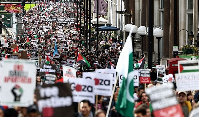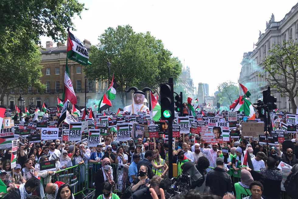 وجابت المظاهرة الحاشدة أنحاء العاصمة البريطانية؛ للمطالبة بالوقف الفوري لإطلاق النار في غزة التي تتعرض للقصف من قبل قوات الاحتلال.