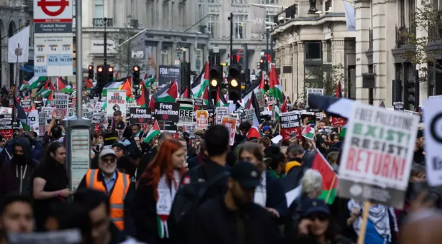 وحذرت الشرطة قبل المسيرة من أن أي شخص سيبدي دعمه لحركة حماس، التي تصنفها بريطانيا منظمة إرهابية محظورة، سيتعرض للاعتقال كما أنها لن تتسامح مع أي فعل يصنف باعتباره جريمة كراهية.