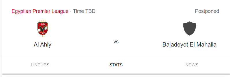 وجاء قرار رابطة الأندية بتأجيل مباراة الأهلي وبلدية المحلة، لأجل غير مسمى، حيث لم تحدد موعدًا أخر، بسبب ارتباط المارد الأحمر بمواجهة صن داونز الجنوب إفريقي، في بطولة الدوري الإفريقي.