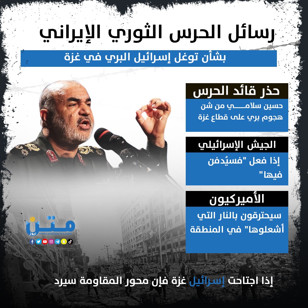رسائل الحرس الثوري الإيراني بشأن توغل إسرائيل البري في غزة (إنفوجراف)