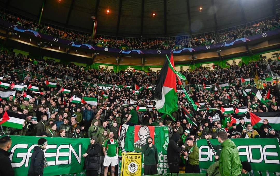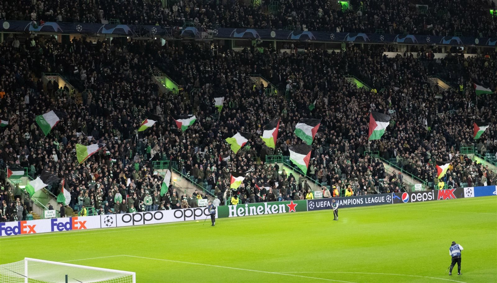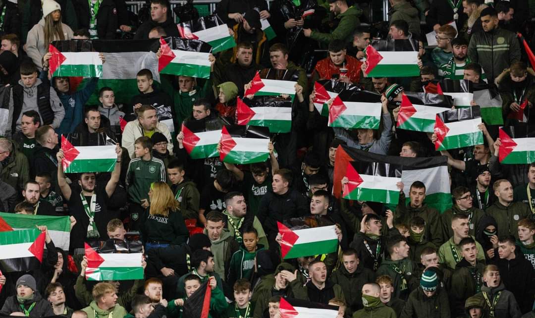 ورفعت جماهير سيلتك عشرات الأعلام في مدرجات ملعب فريقها، للتعبير عن مساندتها لفلسطين ورفضها الحرب الدائرة على قطاع غزة.