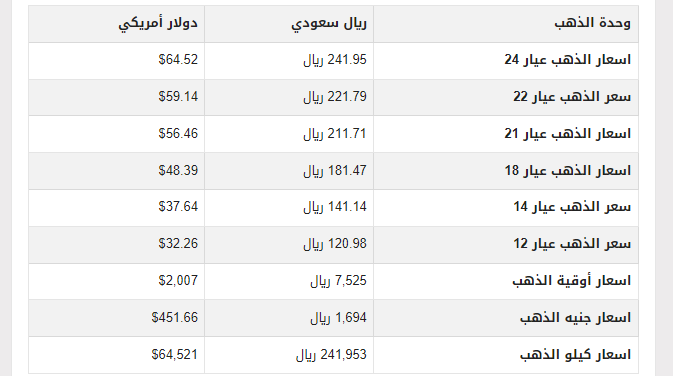 وفي هذه الصفحة، نعرض لكم سعر الذهب في السعودية الان بالريال السعودي والدولار الأمريكي وفقًا لأسعار بورصة الذهب العالمية ومحلات ومتاجر الذهب بالسعودية مباشر لعيار (24-22-21-18-14-12) والأونصة والجنيه وكيلو الذهب.