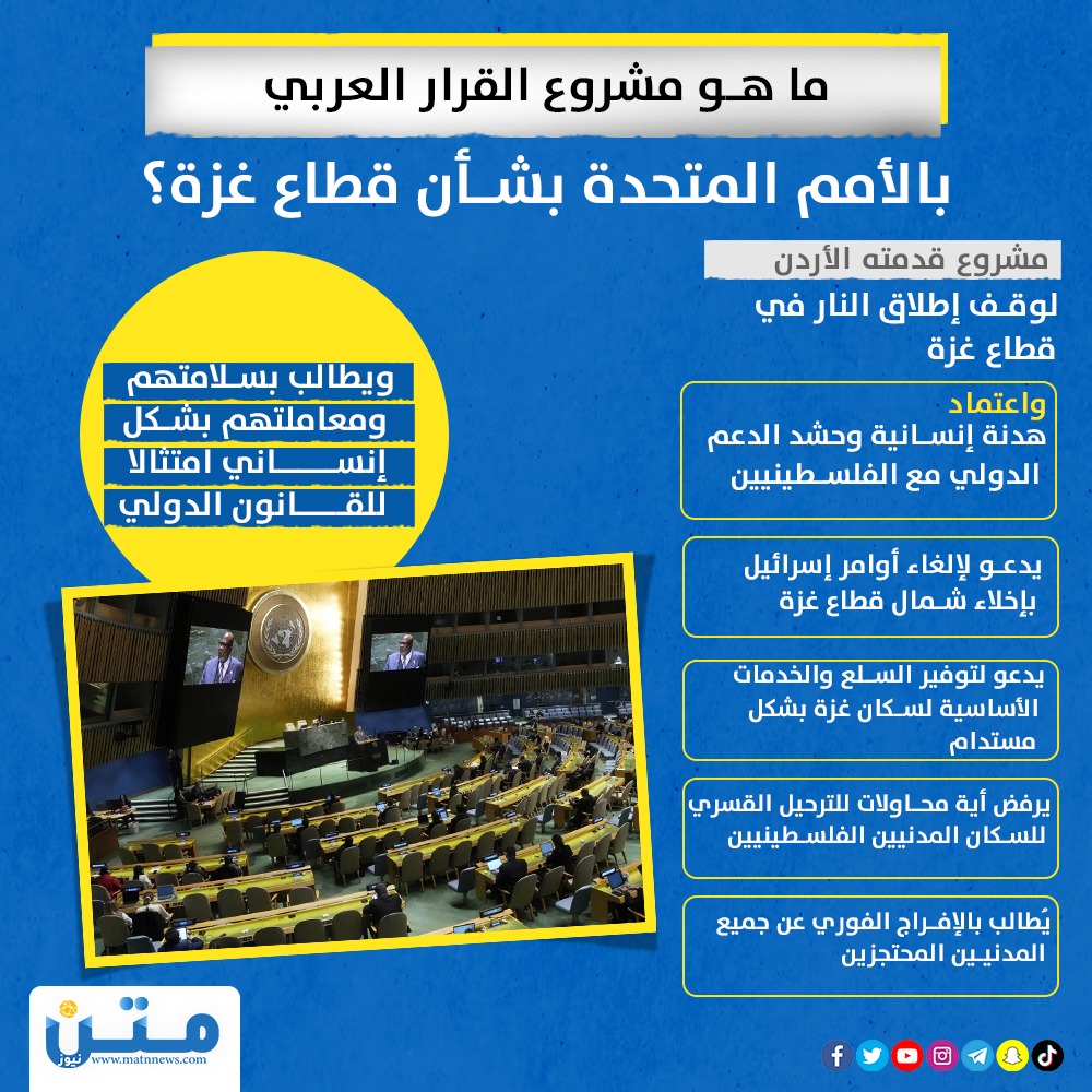 ما هو مشروع القرار العربي بالأمم المتحدة بشأن قطاع غزة؟ (انفوجراف)
