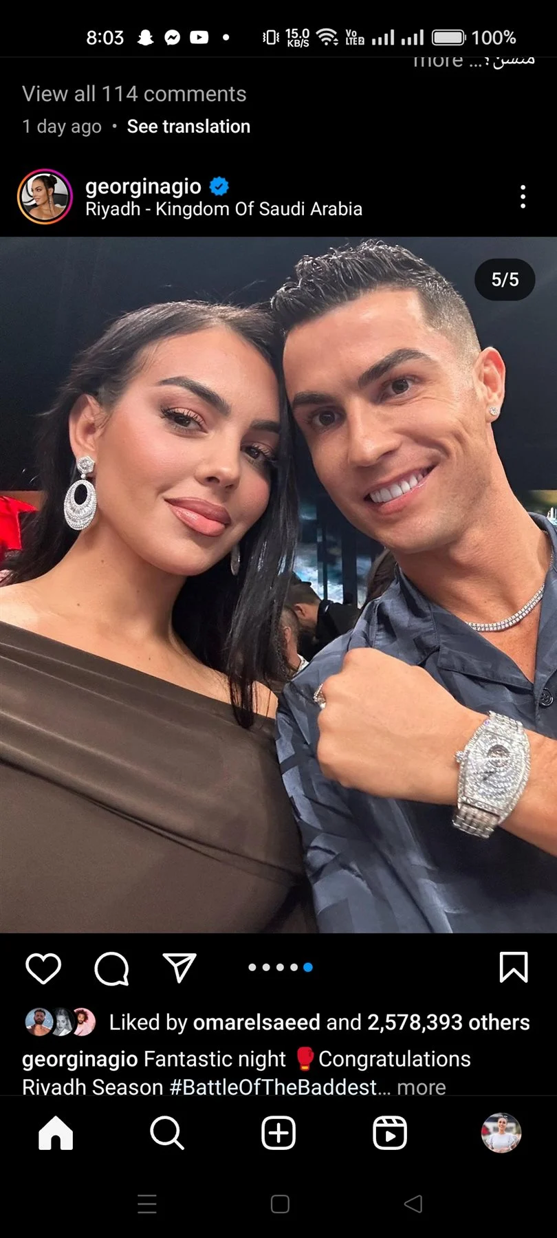 وعلقت أحلام على منشور لجورجينا على “إنستجرام” قائلة: "مجوهراتها نفس مجوهراتي شي غريب كل ساعاتي نفس ساعاتها”.
