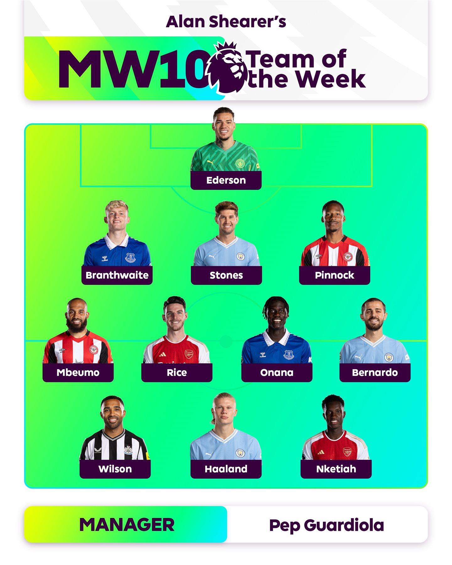 خط الهجوم: كالوم ويلسون (نيوكاسل)، إيرلينج هالاند (مانشستر سيتي)، إيدي نكيتياه (أرسنال).