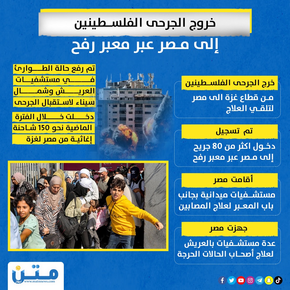 خروج الجرحى الفلسطينين إلى مصر عبر معبر رفح (انفوجراف)