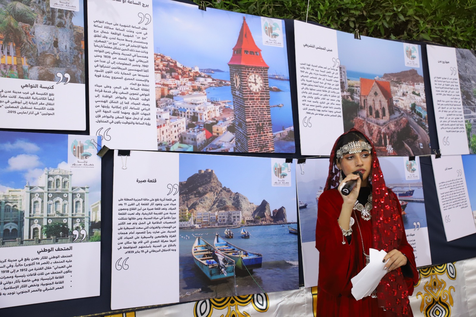 تم خلال المعرض تقديم نبذة عن المعرض والمعالم الأثرية باللغة الإنجليزية من خلال أروى أحمد الغلام العمودي، كما تم عرض مجموعة من الصور التذكارية أشرفت على تنفيذه فريدة أحمد، المسؤول عن قسم الصور وبمعاونة كلا من حسن نايف حسن بن حسينون، وجيزان محسن الدغفلي، وحظي المعرض بحضور عدد كبير من المسؤولين في مصر.