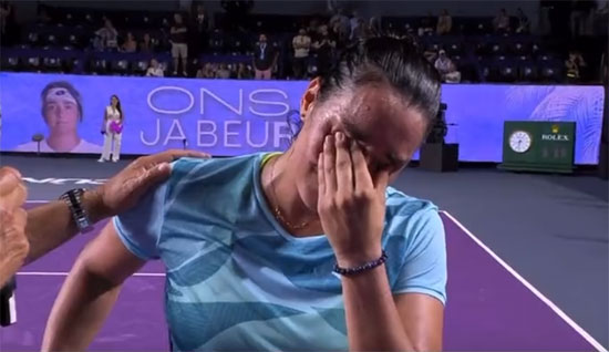 وأجهشت أنس جابر في البكاء بسبب ما يحدث في فلسطين، خلال لقاء صحفي لها عقب تحقيق فوزها الأول في بطولة كانكون المكسيكية، على حساب نظيرتها التشيكية ماركيتا فوندروشوفا، بمجموعتين دون مقابل.