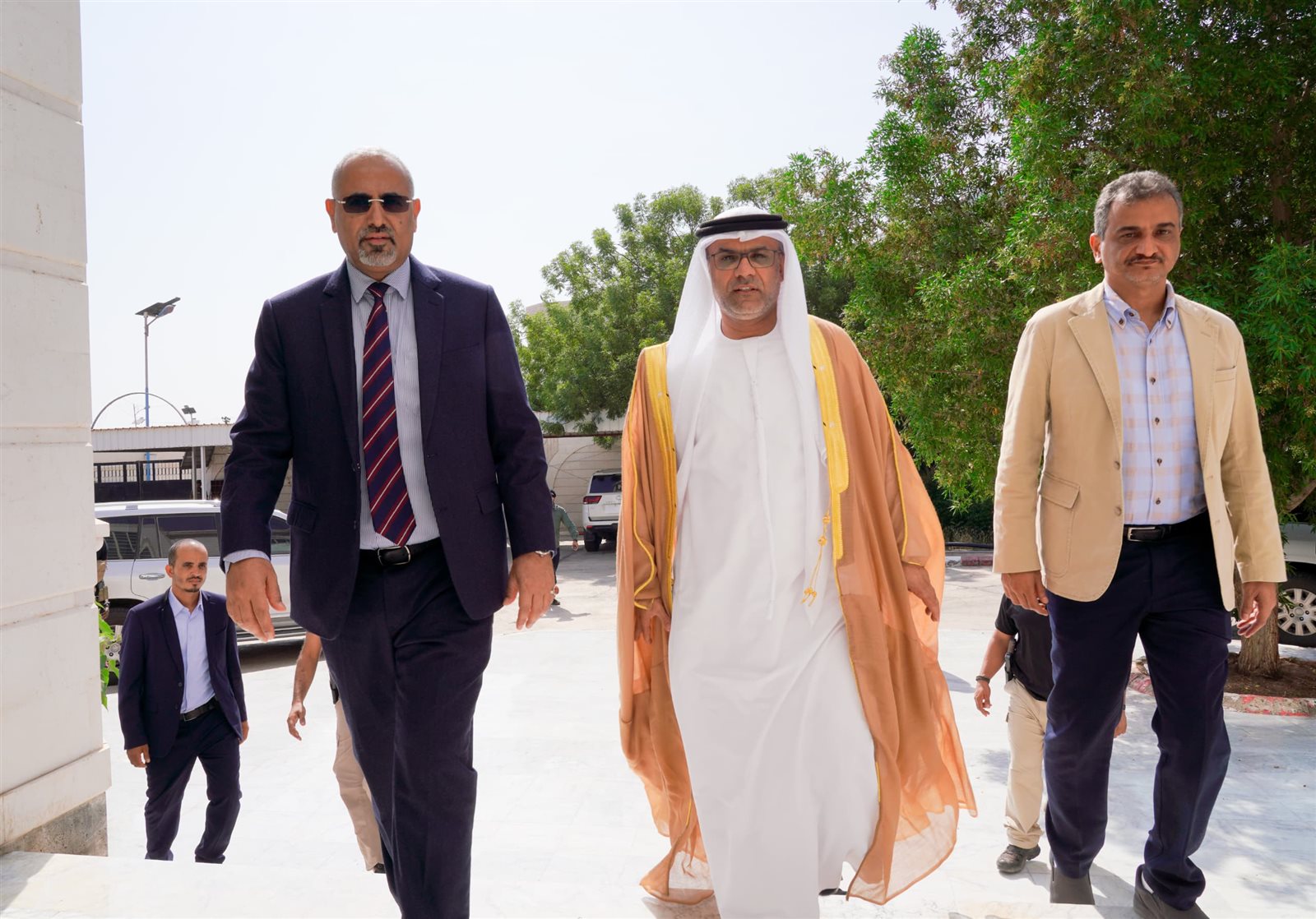 وثمّن الزُبيدي، خلال اللقاء، المواقف الأخوية المخلصة لدولة الإمارات إلى جانب بلادنا ومساندة شعبنا في مختلف الظروف، معربا عن تقديره للدعم الأخوي اللامحدود الذي تقدمه دولة الإمارات لشعبنا في المجالين الإنساني والتنموي، وفي مقدمتها حزمة المشاريع التنموية المقدمة من قبل الحكومة الإماراتية في مجالات الأمن، والطاقة، والمياه والصرف الصحي، والتربية والتعليم، والصحة.