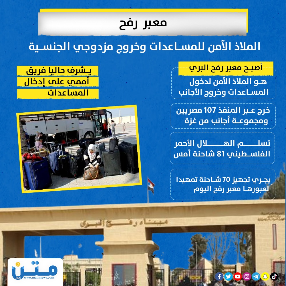 معبر رفح.. الملاذ الآمن للمساعدات وخروج مزدوجين الجنسية (انفوجراف)