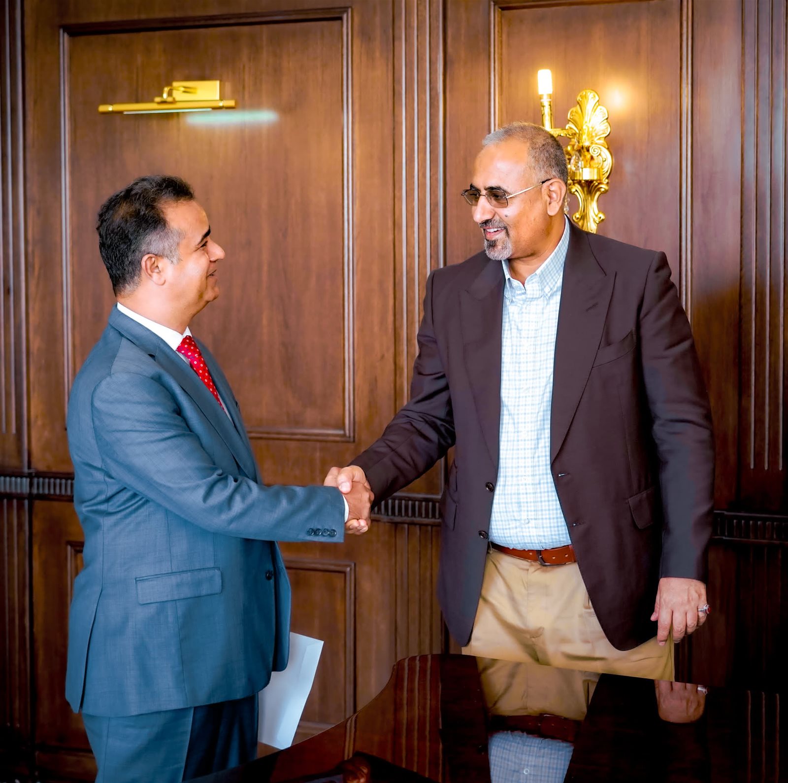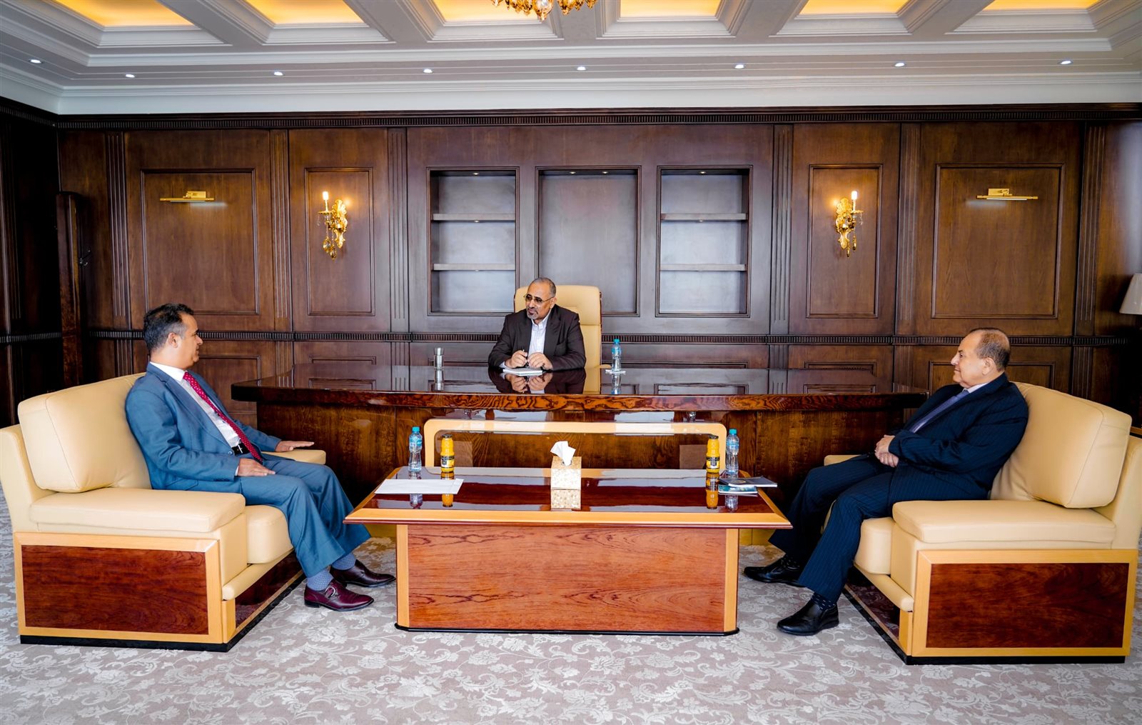 نائب رئيس مجلس القيادة الرئاسي باليمن يلتقي السفير الليبي لدى بلاده (صور)
