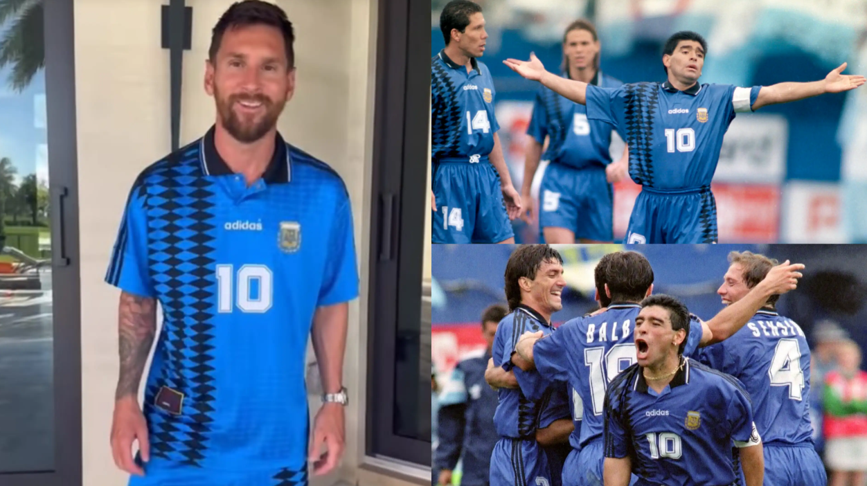 ظهر النجم ليونيل ميسي بقميص منتخب الأرجنتين الذي يحمل ذكريات كأس عالم 1994، في جلسة تصوير خاصة بقميص التانجو.