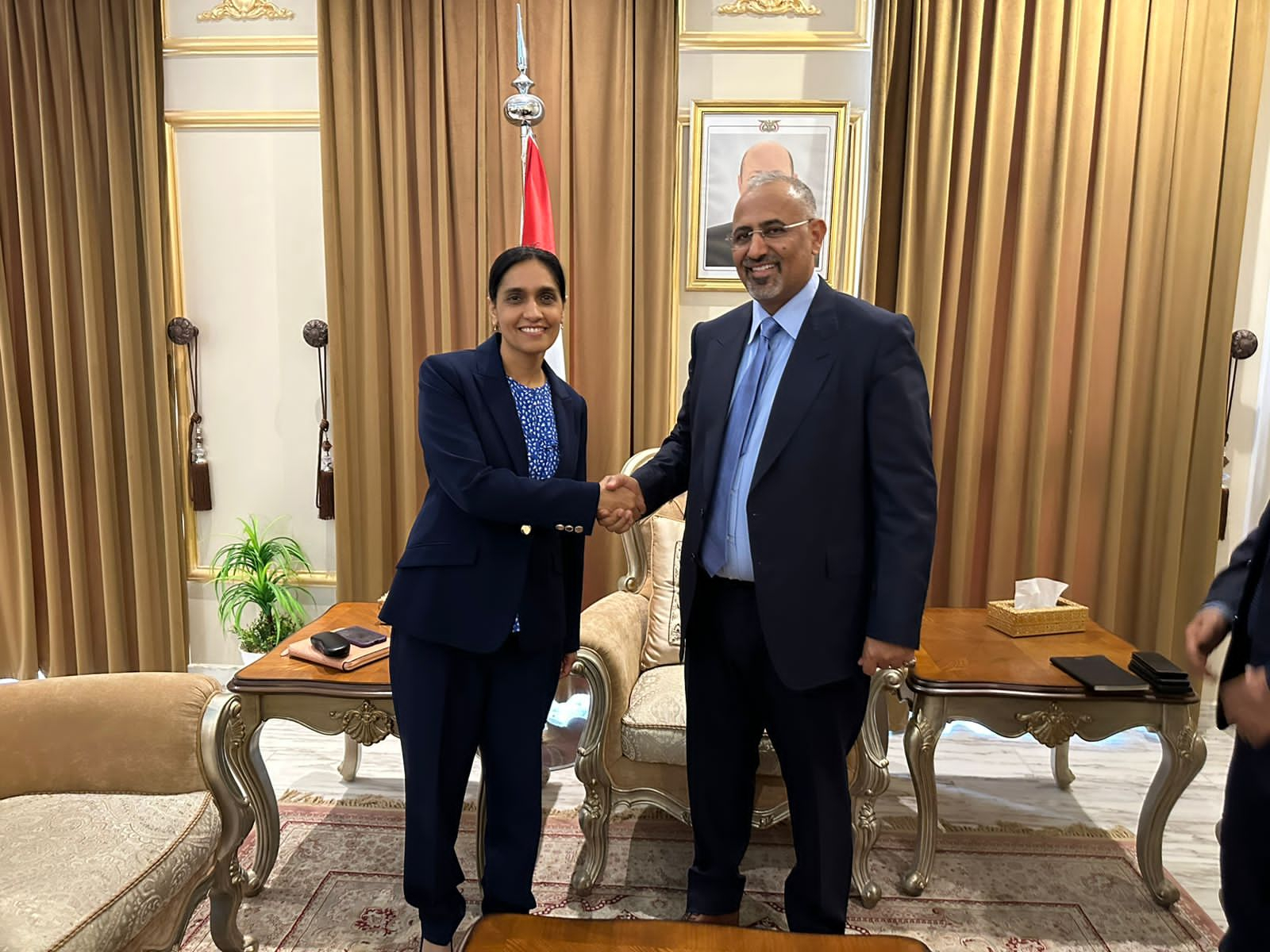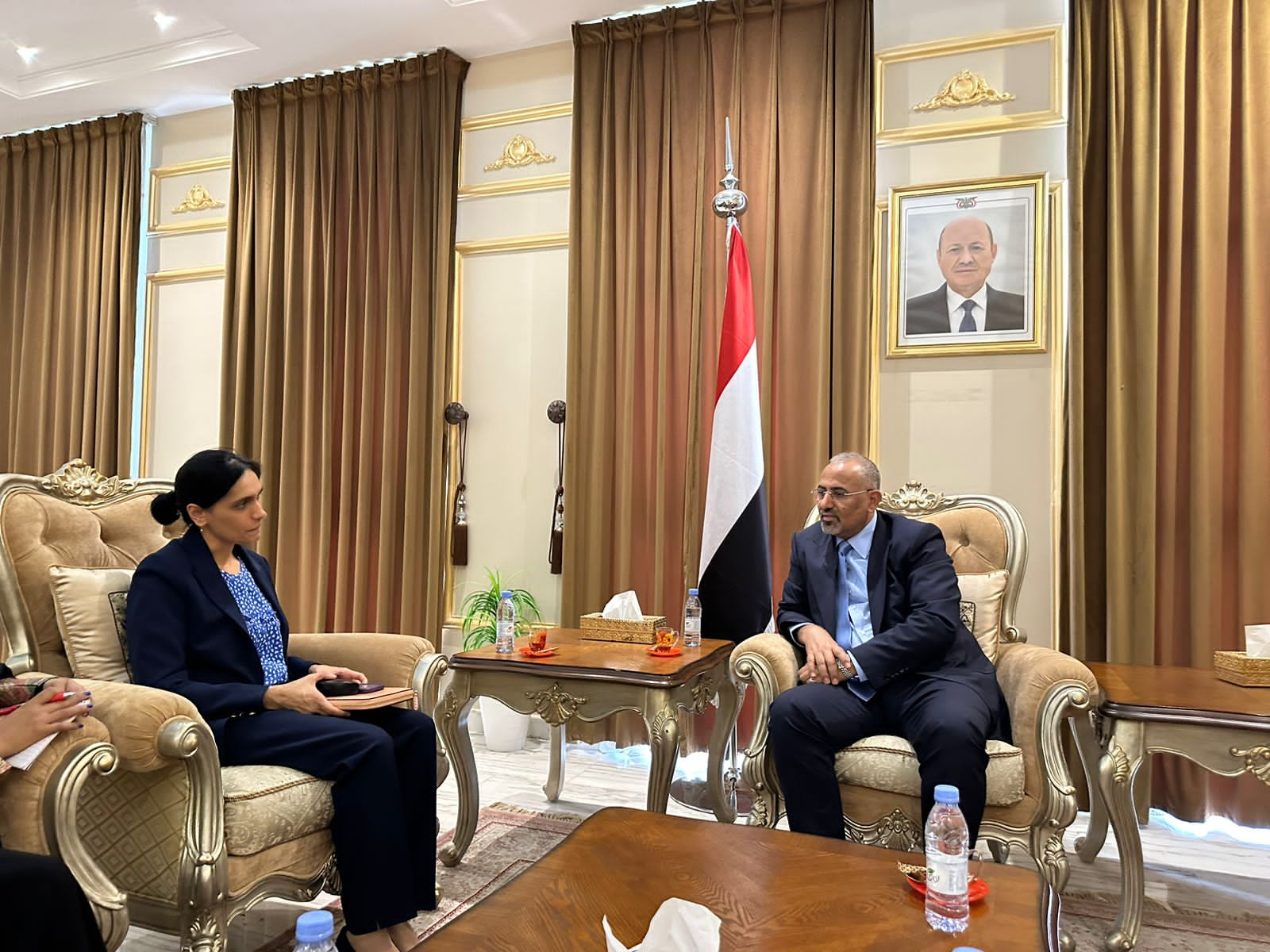 وفي مستهل اللقاء، رحّب الزُبيدي بسعادة السفيرة عبدة شريف، معربا عن سعادته بلقائها في مستهل مشوارها الدبلوماسي كسفيرة لمملكة المتحدة لدى اليمن.