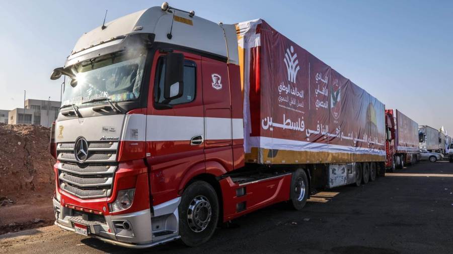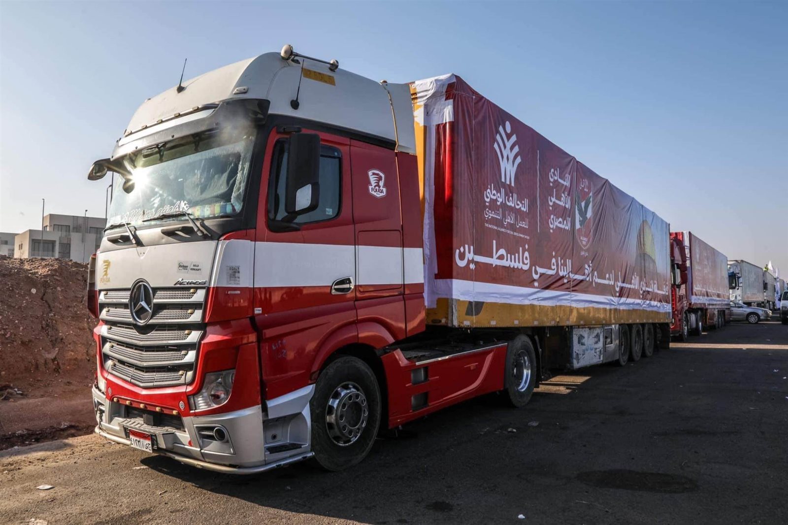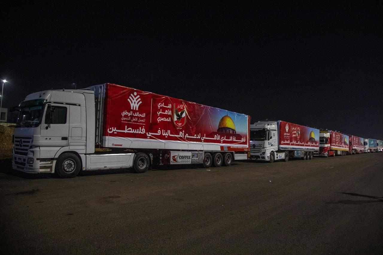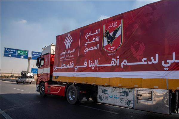 شاهد.. قافلة الأهلي المصري الإغاثية تتوجه إلى قطاع غزة (صور)
