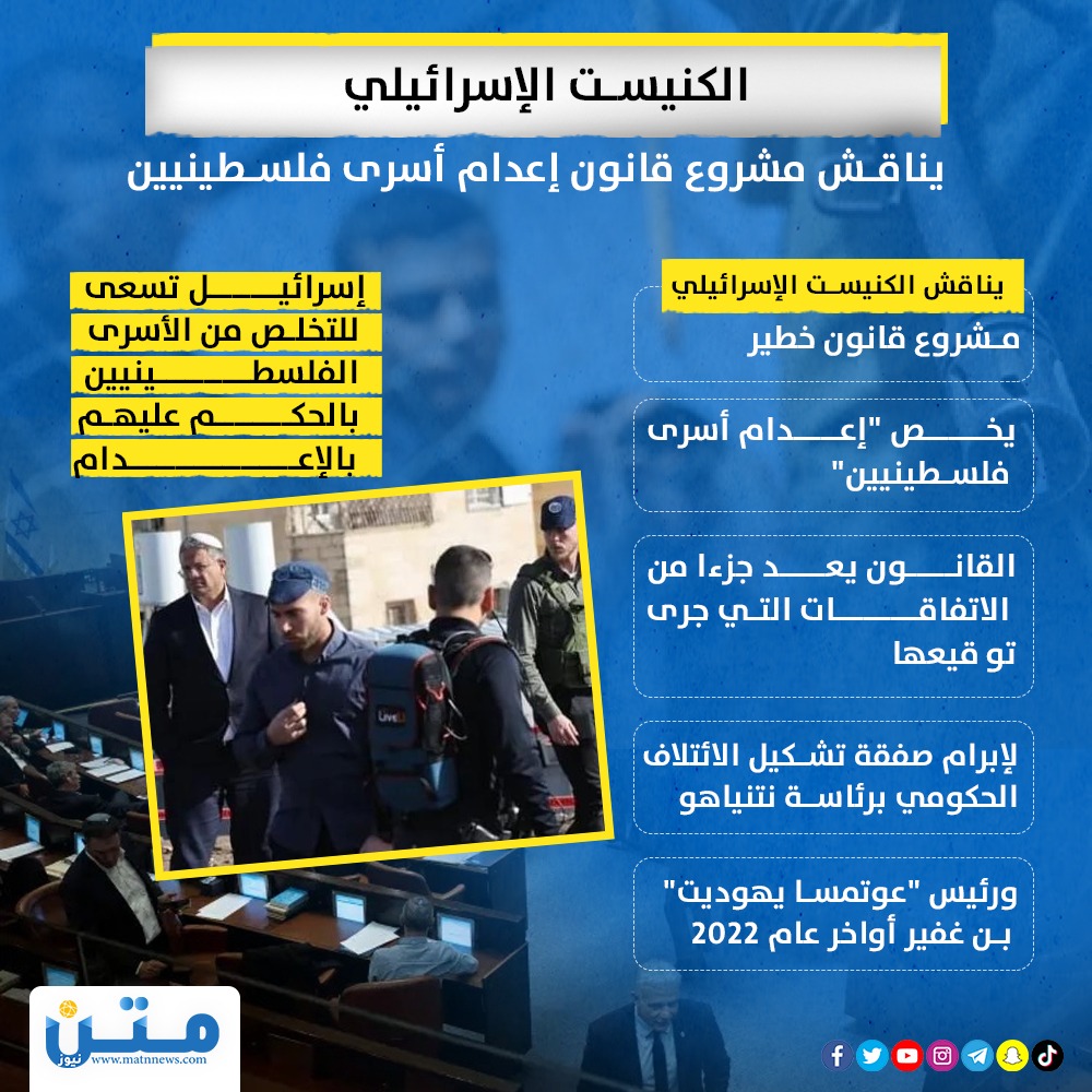 الكنيست الإسرائيلي يناقش مشروع قانون إعدام أسرى فلسطينيين (انفوجراف)