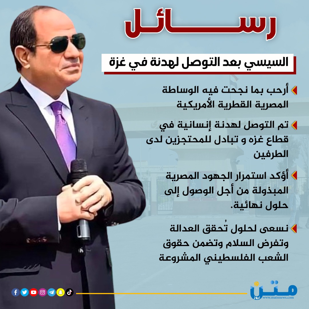 رسائل السيسي بعد التوصل لهدنة في غزة (انفوجراف)