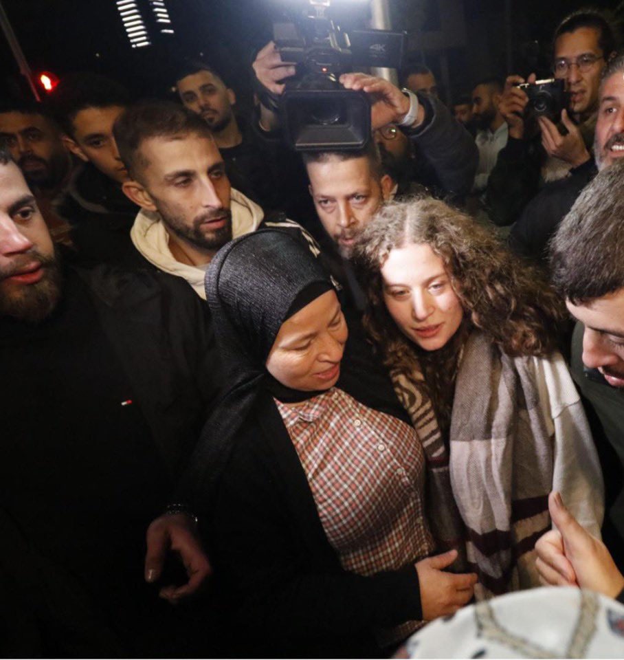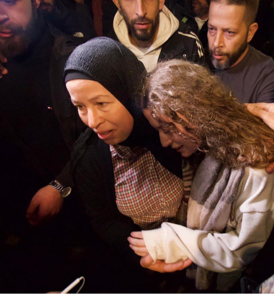 أفرجت قوات الاحتلال الإسرائيلية عن الناشطة الفلسطينية عهد التميمي التي لقبت بـ "أيقونة المقاومة الشعبية"، ضمن الصفقة السادسة لتبادل الأسرى بينها وبين حماس، والتي تشمل الإفراج عن 30 أسيرًا فلسطينيًا، صباح اليوم الخميس، وقد ظهرت عهد في حالة صحية سيئة، يظهر عليها علامات التعب، واستقبلتها عائلتها بفرحة عارمة لعودتها المنزل من جديد.