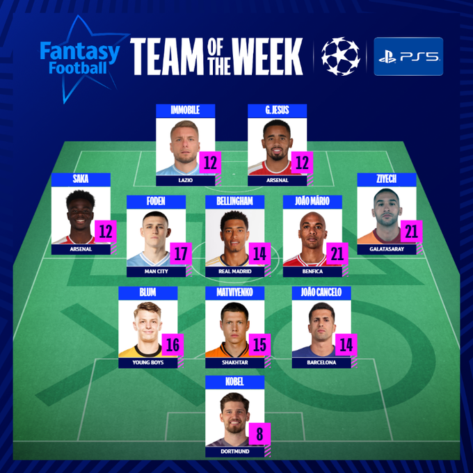 خط الهجوم: جابرييل جيسوس (آرسنال) – 12 نقطة، تشيرو إيموبيلي (لاتسيو) – 12 نقطة.