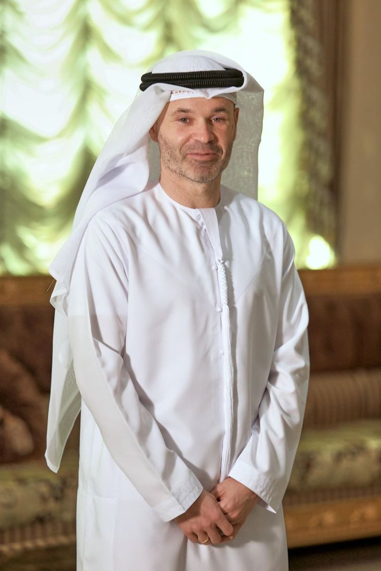 احتفل النجم الإسباني أندريس إنييستا، لاعب فريق الإمارات بالعيد الوطني لدولة الإمارات، خلال موسمه الأول في دوري أدنوك للمحترفين.