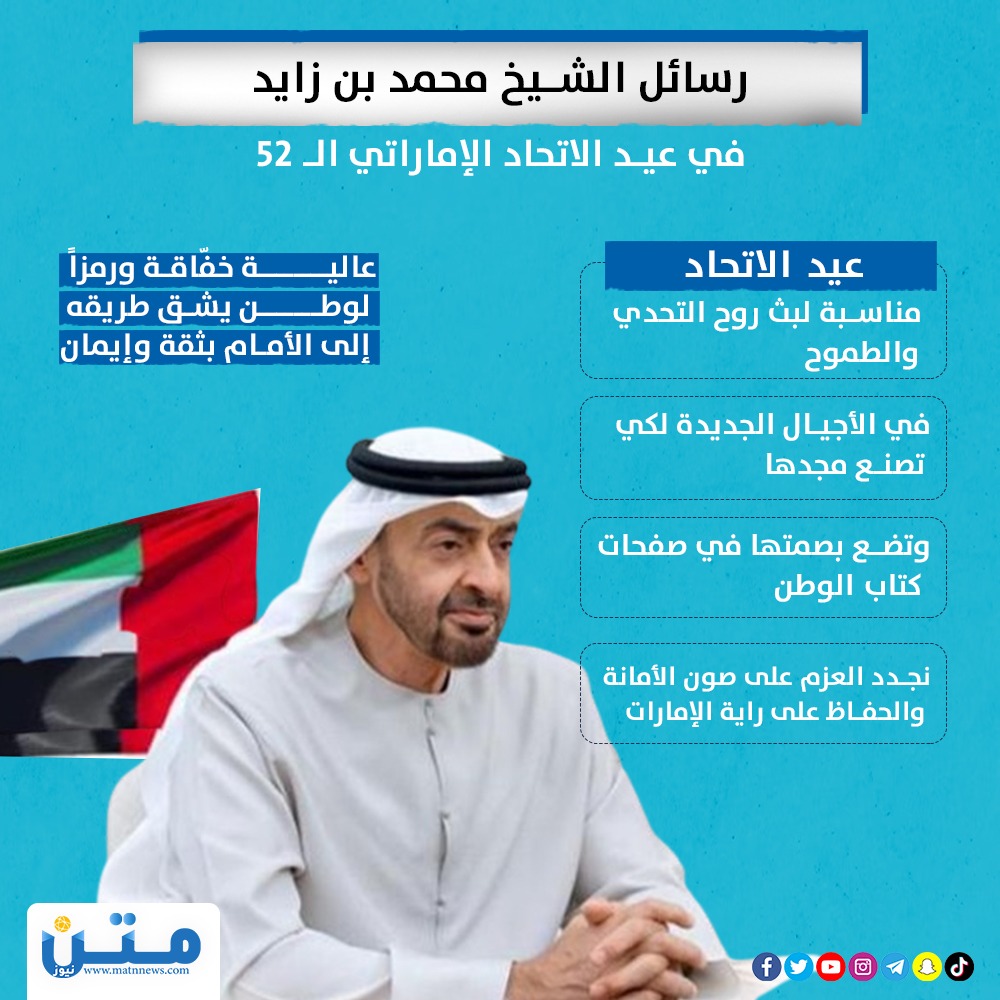 سائل الشيخ محمد بن زايد في عيد الاتحاد الإماراتي الـ 52 (أنفوجراف)
