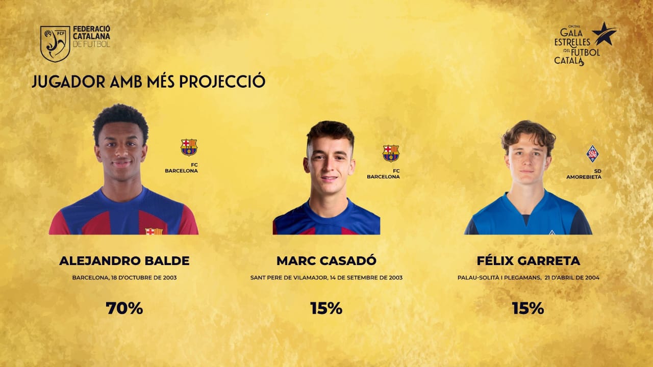 كما تُوج زميله في برشلونة أليخاندرو بالدي بجائزة أفضل لاعب كتالوني شاب، بعدما حصد 70% من الأصوات، متفوقًا على زميله الشاب، مارك كاسادو، وفيليكس جاريتا لاعب فريق سوسيداد ديبورتيفو أموريبييتا في الدرجة الثانية.
