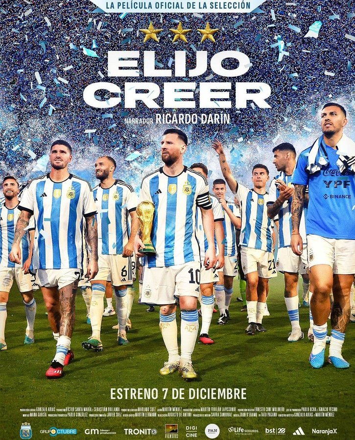 وأعلن الاتحاد الأرجنتيني عبر حسابه الرسمي على موقع التواصل الاجتماعي "إكس"، عن إصدار فيلم عن أبطال العالم في جميع دور السينما، وذلك يوم 7 ديسمبر المقبل.