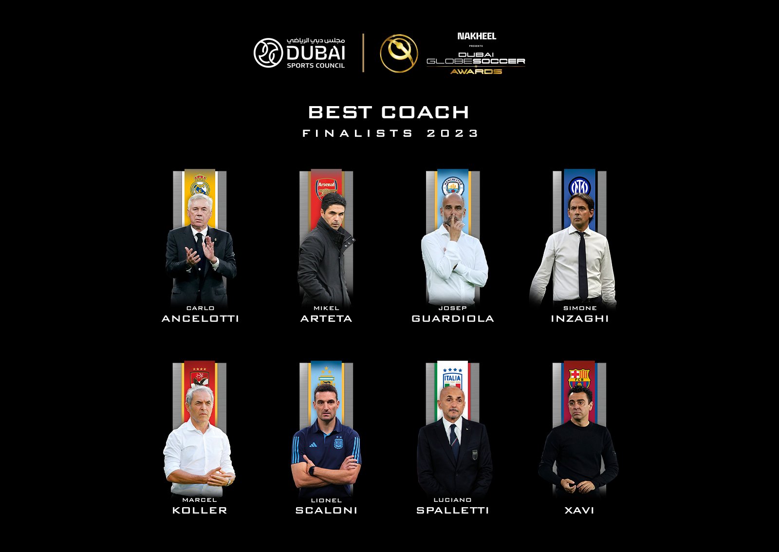 مارسيل كولر (الأهلي)، كارلو أنشيلوتي (ريال مدريد)، ميكيل أرتيتا (أرسنال)، ليونيل سكالوني (الأرجنتين)، بيب جوارديولا (مانشستر سيتي)، لوتشيانو سباليتي (منتخب إيطاليا)، سيموني إنزاجي (إنتر ميلان)، تشافي هيرنانديز (برشلونة).