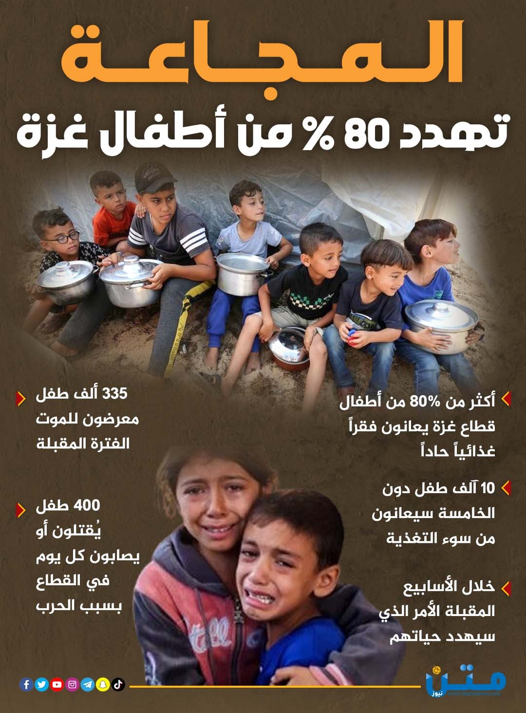 المجاعة تهدد 80% من أطفال غزة (انفوجراف)