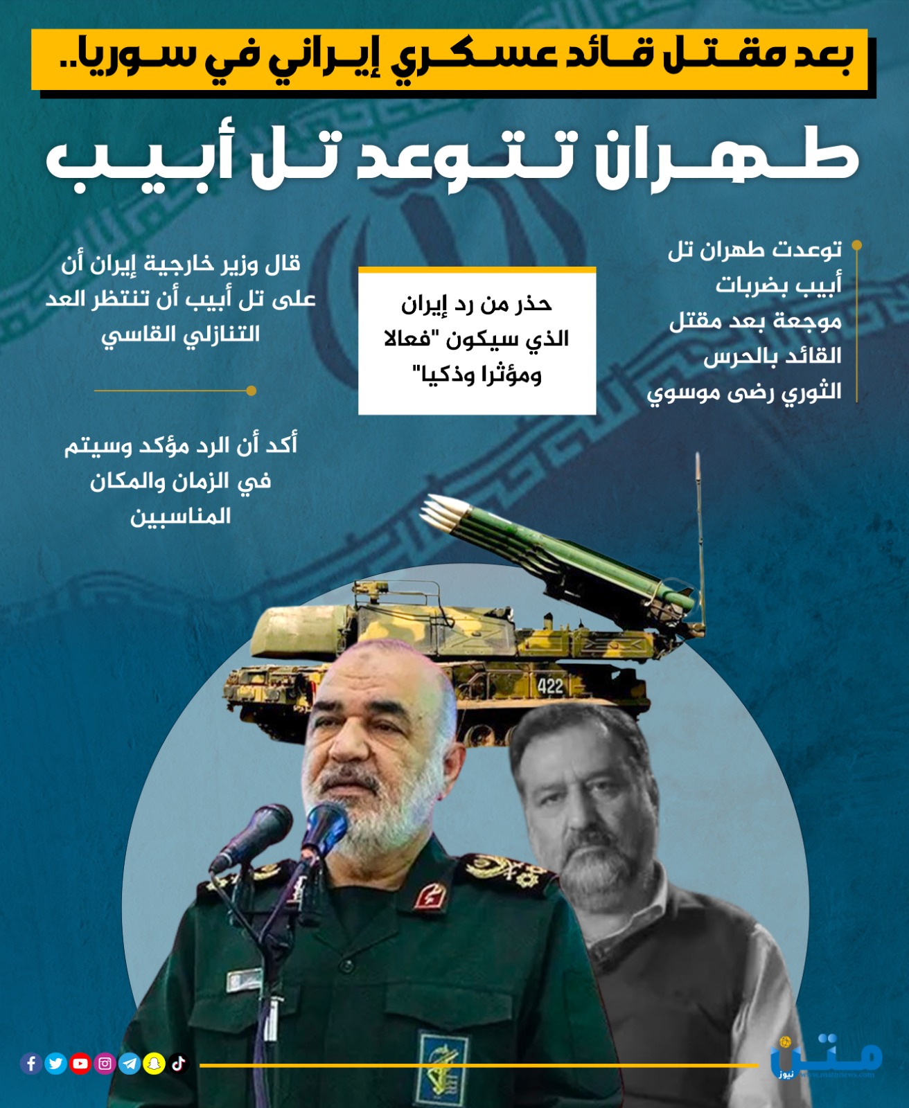 بعد مقتل قائد عسكري إيراني في سوريا.. طهران تتوعد تل أبيب (إنفوجراف)