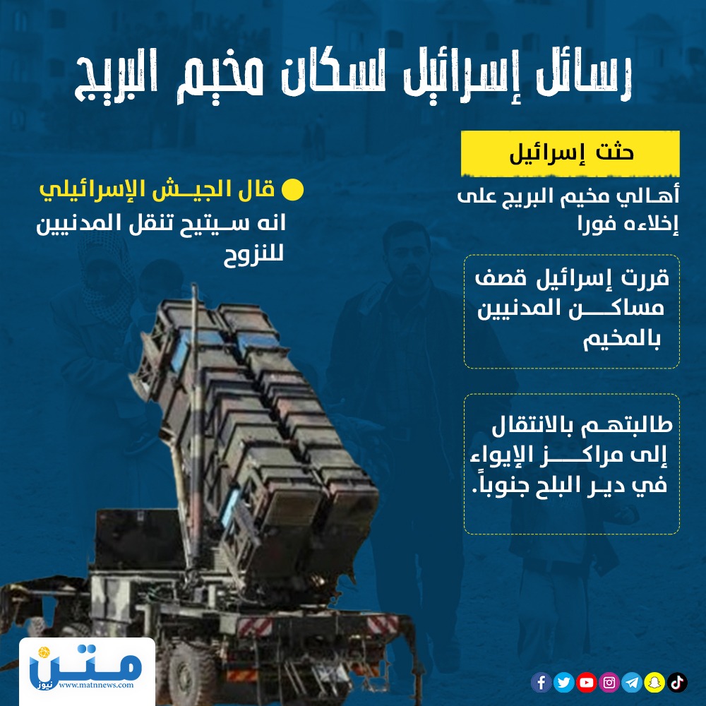 رسائل إسرائيل لسكان مخيم البريج (انفوجراف)