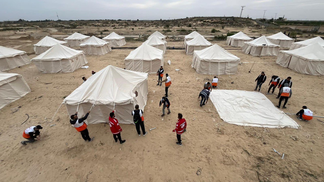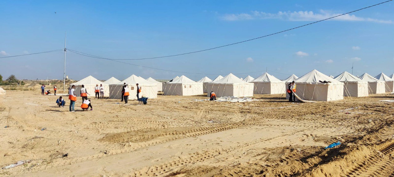 كشف الهلال الأحمر المصري عن إقامة مخيمات ضخمة جنوب غرب خان يونس بقطاع غزة.