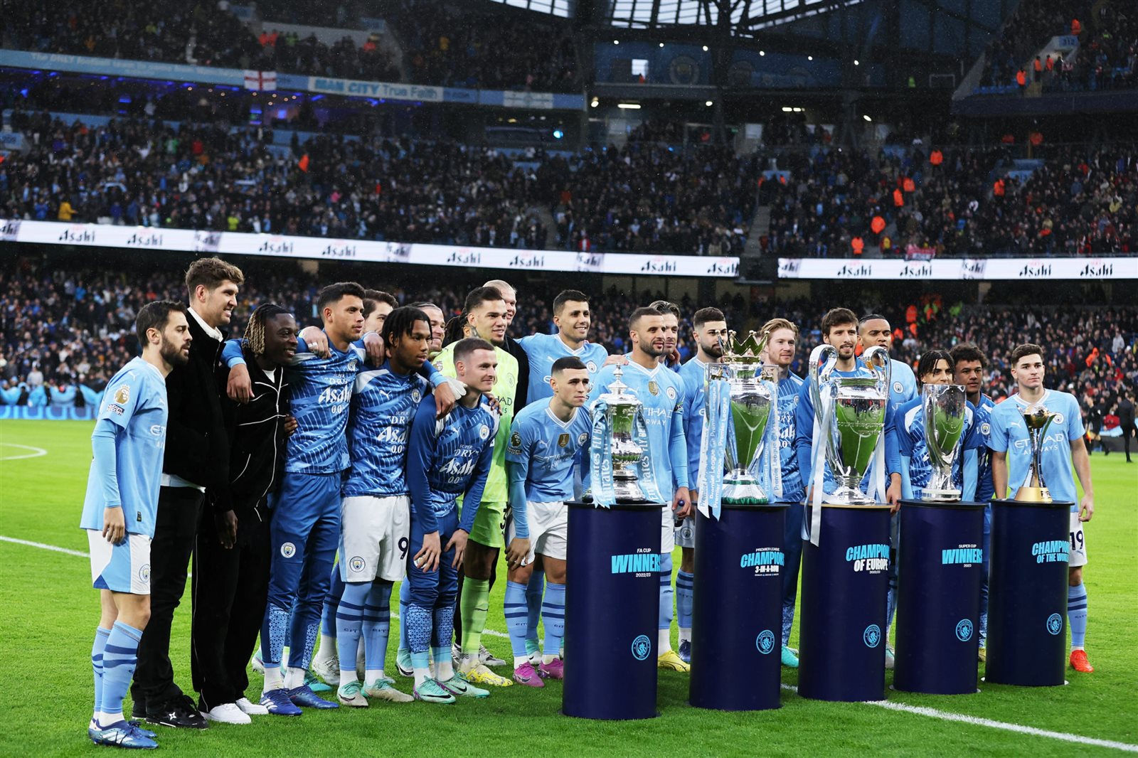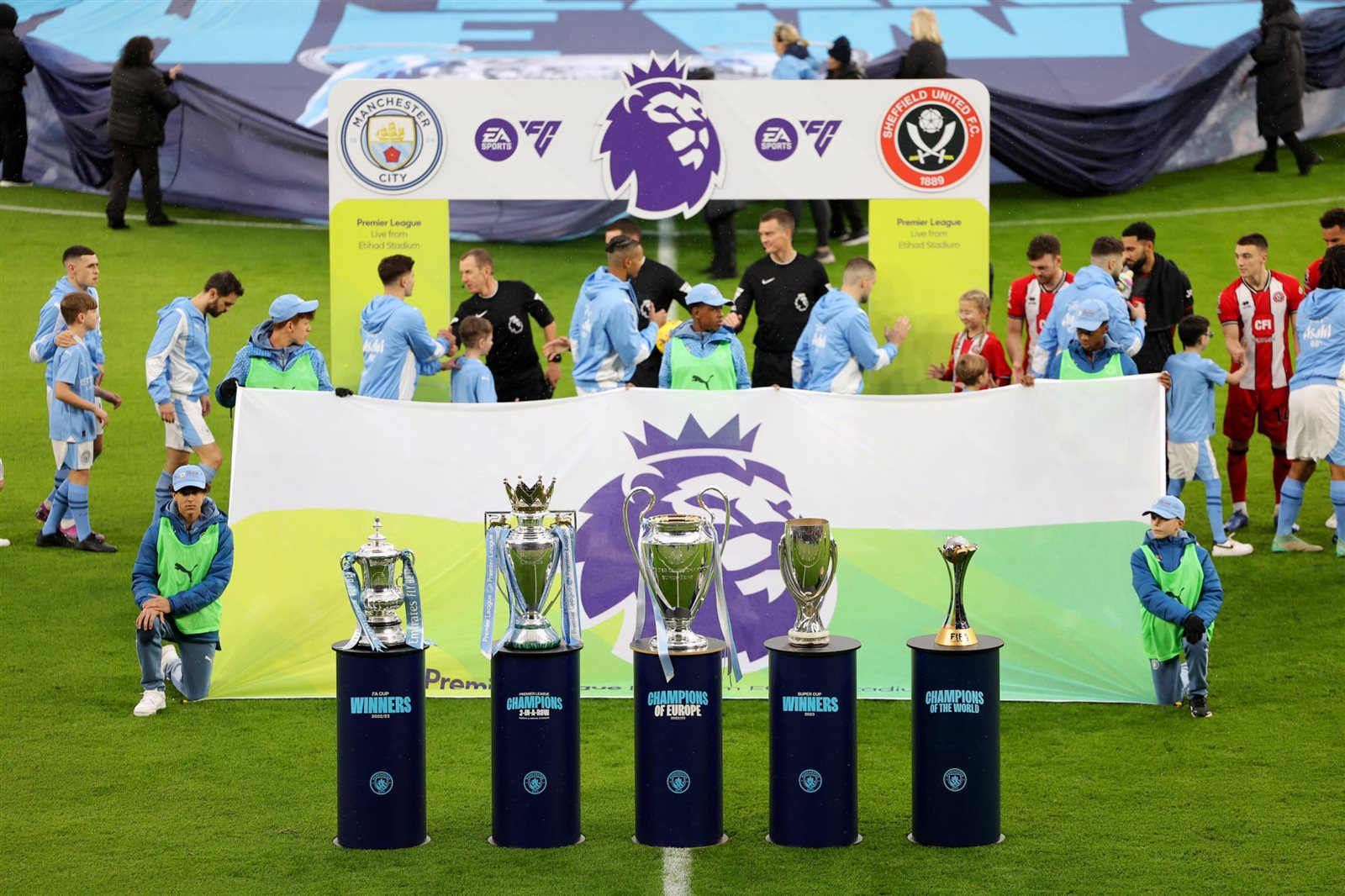 واحتفل لاعبو مانشستر سيتي بالخماسية التاريخية قبل انطلاق المباراة، حيث حرص اللاعبون على التقاط الصور مع الألقاب الخمسة للفريق قبل مواجهة شيفيلد يونايتد.