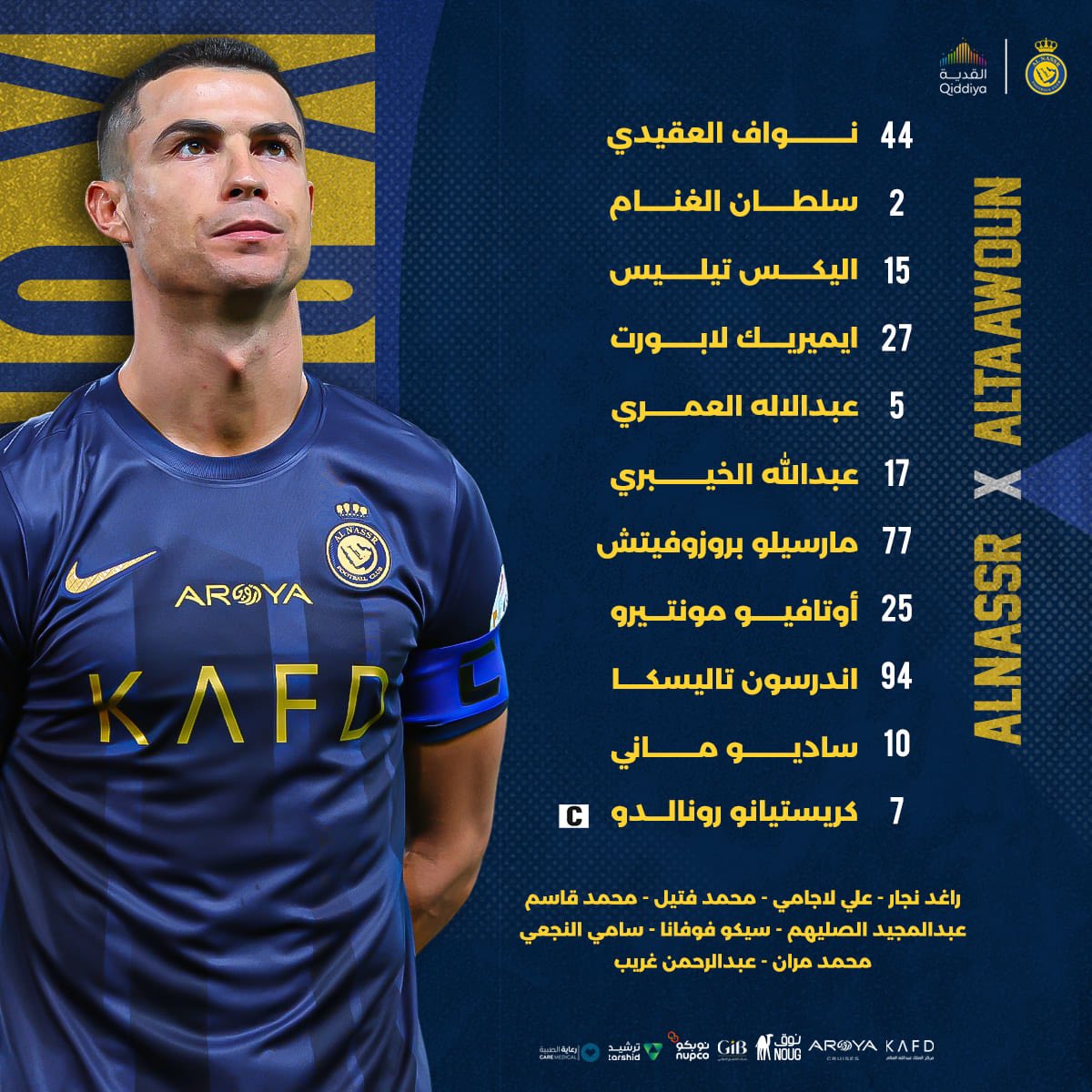 حراسة المرمى: نواف العقيدي.