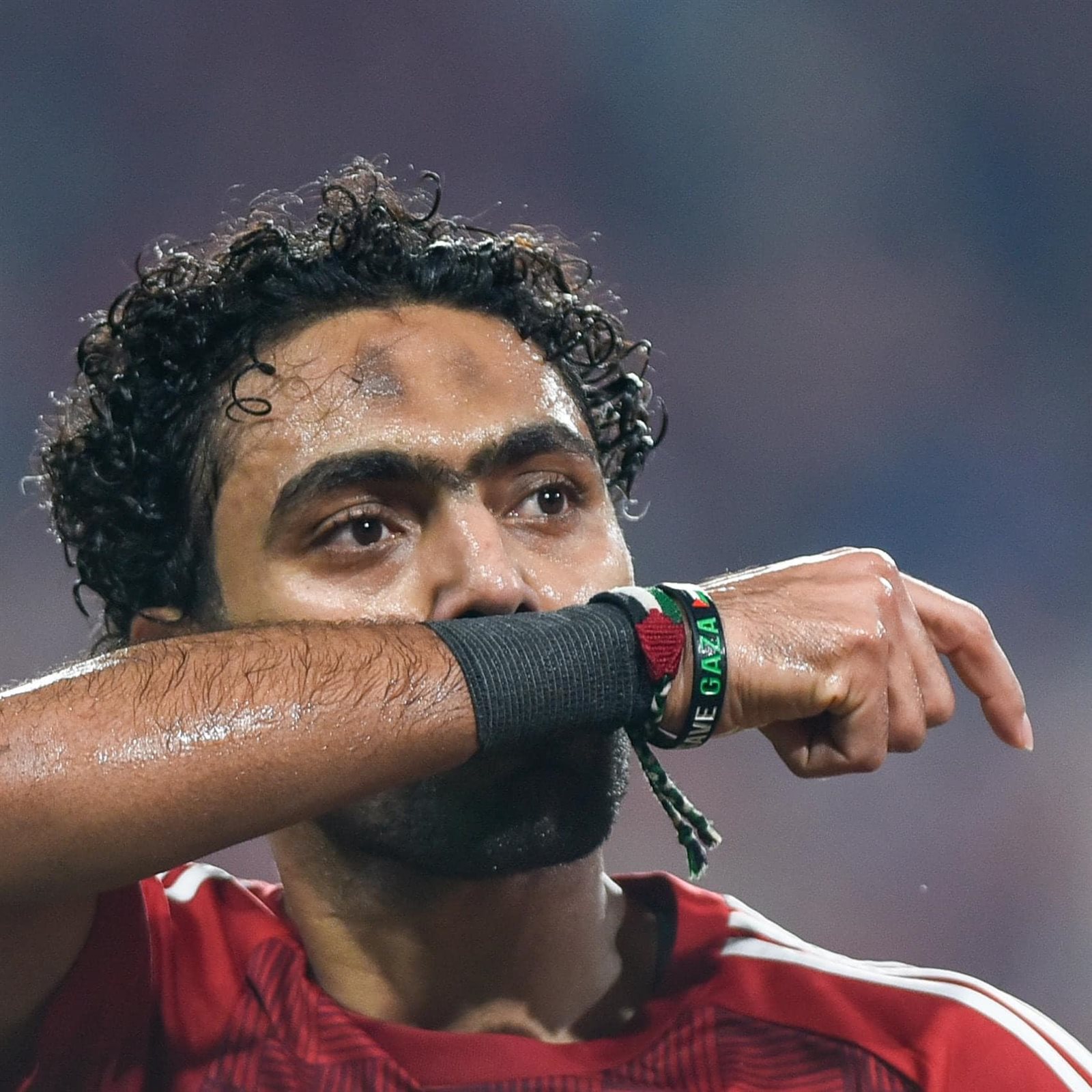 وجه حسين الشحات، لاعب النادي الأهلي المصري رسالة إلى الشعب الفلسطيني، وذلك بعدما دعمهم في مباراة نهائي كأس السوبر المصري 2023.