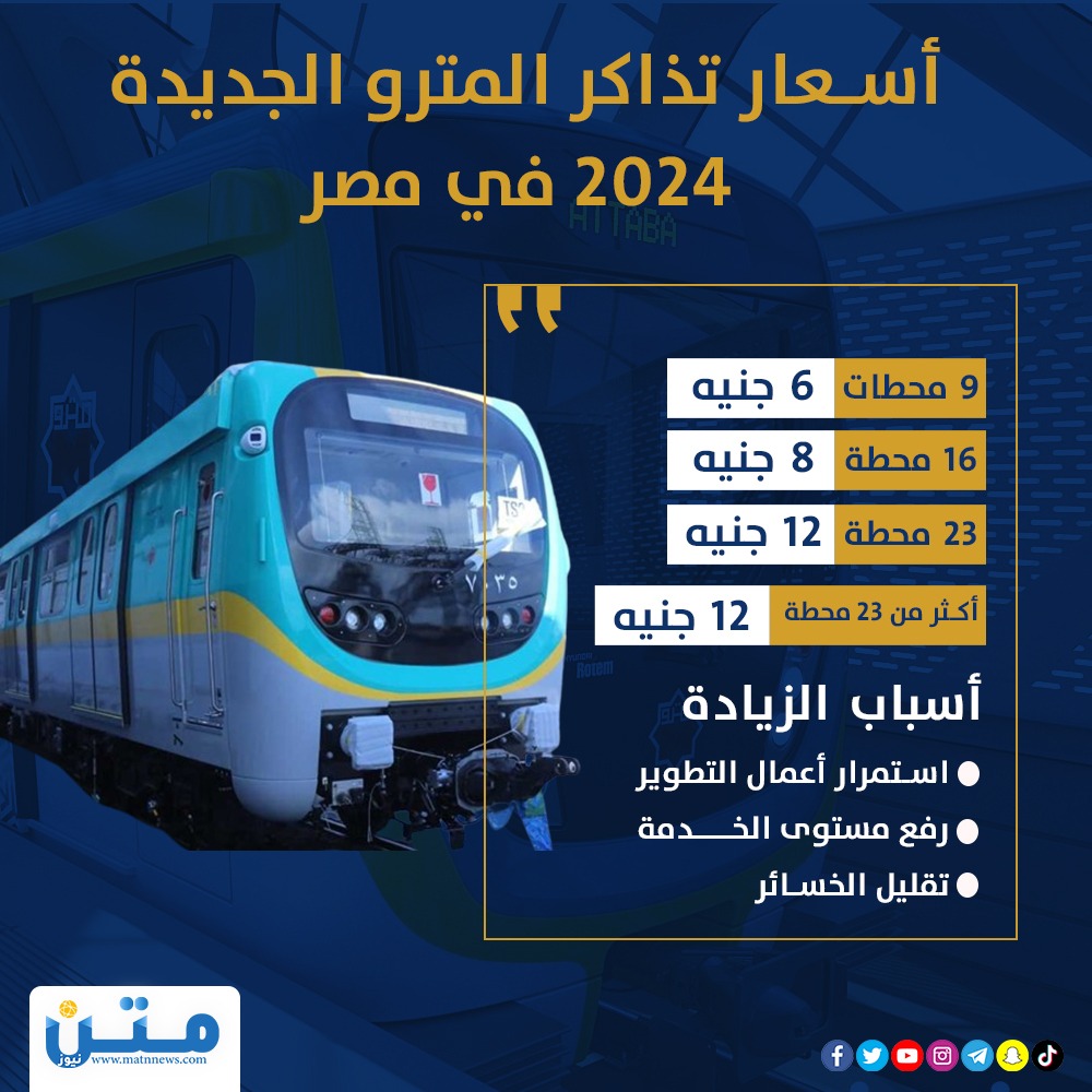أسعار تذاكر المترو الجديدة 2024 في مصر (انفوجراف)